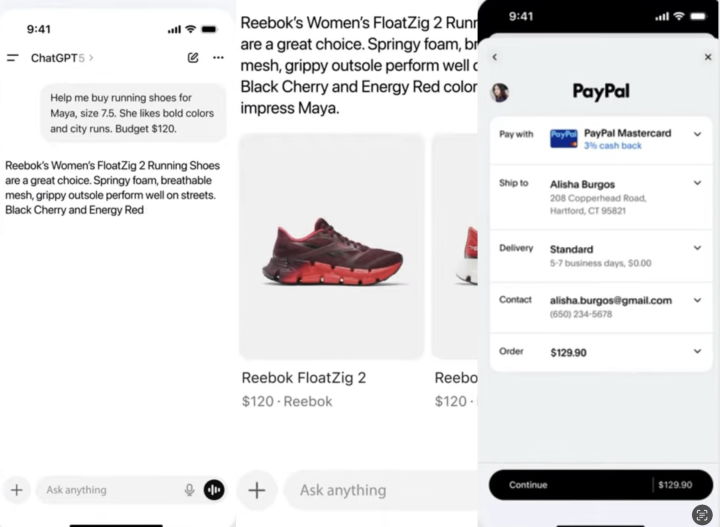 ChatGPT打通购物支付流程。图源:PayPal官方